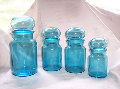 Title (ebay affiliate link): VINTAGE BELGIUM BLUE GLASS APOTHECARY JARS SET OF (4)