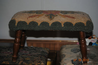 Title (ebay affiliate link): Vintage Wood Foot Stool with Hook n Rug covered top