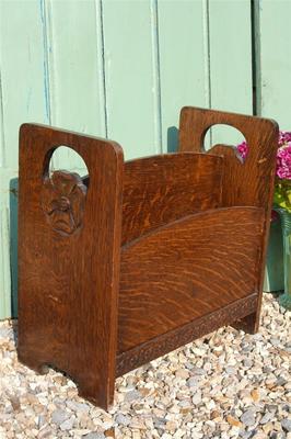 Art Deco Solid Oak Newspaper Stand 1930's Canterbury Carved Magazine Rack Chic