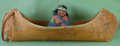 Title (ebay affiliate link): Great Antique Birch Bark & Sweet Grass Canoe Model With Skookum Doll 1932