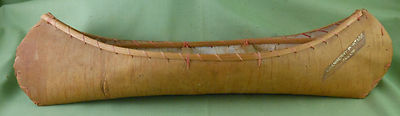 Title (ebay affiliate link): Great Antique 18'' Birch Bark Canoe Model "Cranberry Portage, Canada"