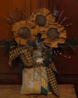 Title (ebay affiliate link): PRIMITIVE SUMMER FALL SUNFLOWER CROW BOBBIN CUPBOARD TUCK GREETER ANTIQUE QUILT