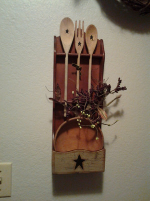 Title (ebay affiliate link): Primitive Crackle Wood Spoon/Bowl Holder Country Black Star Decor