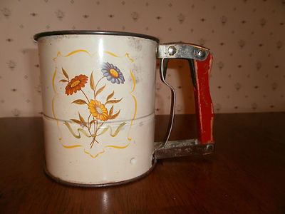 Title (ebay affiliate link): VINTAGE PRIMITIVE ANDROCK HAND-I-SIFT FLOUR SIFTER WITH WOODEN RED HANDLE USA