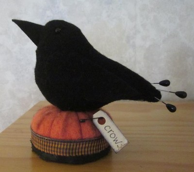 Title (ebay affiliate link): PRIMITIVE WOOL CROW BIRD HALLOWEEN MAKE DO PIN CUSHION PFATT EHAG
