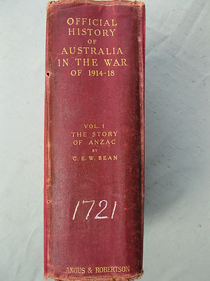 Title (ebay affiliate link): VOL1 C E W BEAN Official History of Australia in the War of 1914-18 2nd Ed Rev.