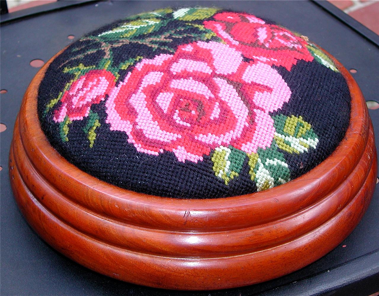 Title (ebay affiliate link): VTG. ANTIQUE VICTORIAN WOOD ROSE NEEDLEPOINT FOOT STOOL