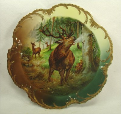 Title (ebay affiliate link): Antique Stag Elk Plate Charger Bavaria Royal Munich Forest Scene Gold Trim