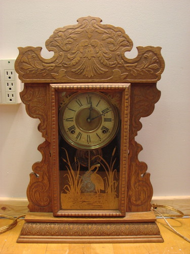 ANTIQUE OAK CLOCK by E.N. WELCH