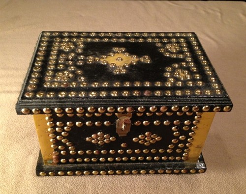 Title (ebay affiliate link): Vintage Arabic/Mediterranean Box, Bank Box,Trinket Box,Wooden With Brass Accents