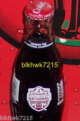 2013 ALABAMA BACK TO BACK NATIONAL CHAMPIONS 2012 8OZ COCA - COLA GLASS BOTTLE