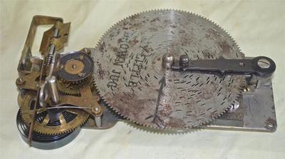 Title (ebay affiliate link): Antique Disc Music Box Clock Works Mechanism with Little Brown Jug Disc 4 Parts