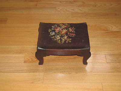Title (ebay affiliate link): Vintage Needlepoint Foot Stool Dark Brown w/Floral Center