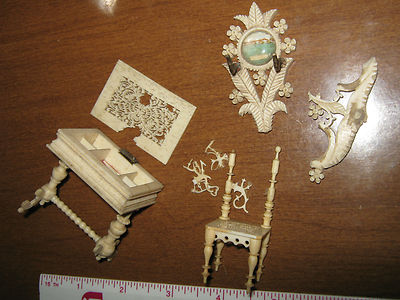 Title (ebay affiliate link): ANTIQUE FRENCH VERY INTRICATE MINIATURE ANIMAL CARVED BONE DOLLHOUSE FURNITURE,