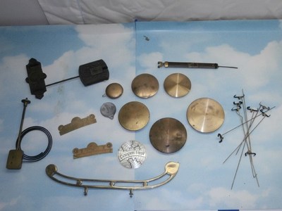Title (ebay affiliate link): HUGE LOT OF ANTIQUE CLOCK PARTS pendulum weights time flies TEMPUS brass chimes
