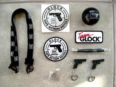 Glock Lot of Keychains, Lapel Pin, Stress Ball, Lanyard, Stickers, Pen (New)