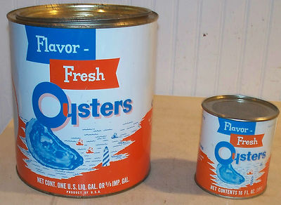 Title (ebay affiliate link): 2 Oyster TINS CANS FLAVOR FRESH RUSSELL HEATHSVILLE VA 202 1 GALLON & 16 fl. OZ