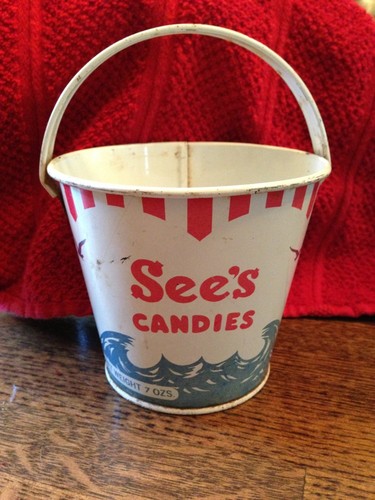 Vintage See's Candies Tin Bucket Pail 7 Ozs.