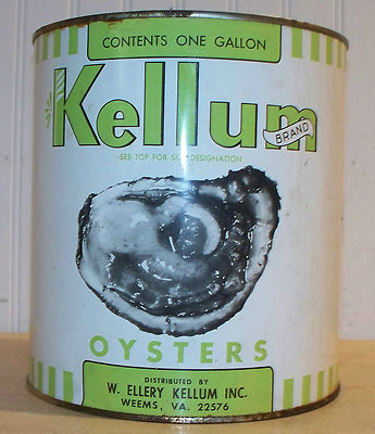 Title (ebay affiliate link): RARE DEL 2 KELLUM BRAND ELLERY KELLUM INC WEEMS VA 1 GALLON OYSTER TIN CAN