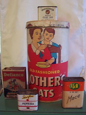 Title (ebay affiliate link): Vintage Advertising Spice Tins - Boxes - Old Fashioned Oats Box kitchen grouping