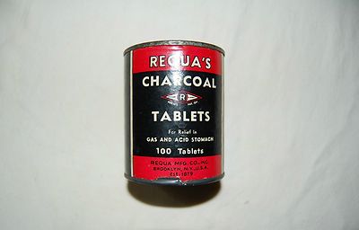 Title (ebay affiliate link): Vintage Requas Charcoal Tablets Tin Advertising for Flatulence Quack Medical