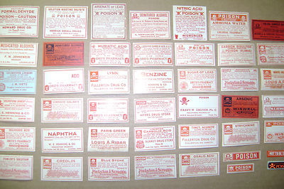 44 OLD= ALL POISON PHARMACY =APOTHECARY = MEDICINE BOTTLE LABELS.===