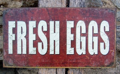 Title (ebay affiliate link): Fresh Farm Eggs Antique Style Tin Sign Ad Retro Kitchen Cafe Wall Decor Gift USA