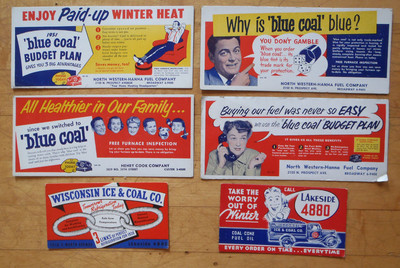 Lot 6 VINTAGE 1951 BLUE COAL ADVERTISING Blotter Wisconsin FUEL Heat Companies