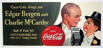 Title (ebay affiliate link): auc 1949 design Coca Cola Edgar Bergen Charlie McCarthy CBS TV TROLLEY Sign '95