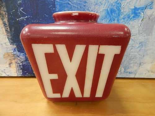 Title (ebay affiliate link): Vintage Antique Exit Sign Light Fixture Triangle Wedge Milk Glass Globe Shade