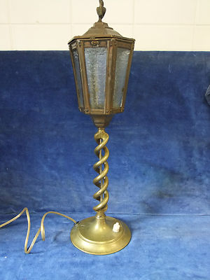 Title (ebay affiliate link): Brass Table Lamp with Double Helix Stem & Lantern Top - Early 20th C [3450]
