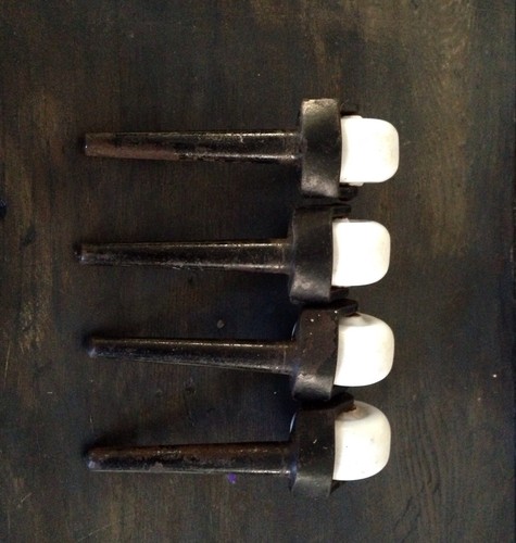 Title (ebay affiliate link): 4 Matching Vintage White Porcelain Wheel Furniture Casters w/ Pin Cases Attached