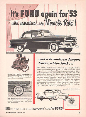 Title (ebay affiliate link): 1953 FORD CUSTOMLINE CAR W/STRATO-STAR 110-HP V-8 ENGINE ORIGINAL AD