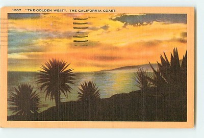 Title (ebay affiliate link): 11742 California CA "The Golden West" Water Sunset Palm Trees c1955 ~ Mailed