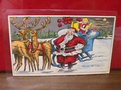 Title (ebay affiliate link): 1908 Santa Claus Postcard Sleigh Full of Toys and Gifts Reindeer Ready To Go