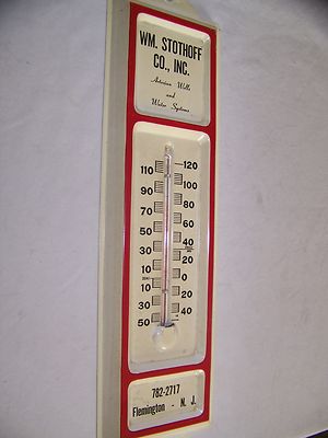 VINTAGE FLEMINGTON NJ ADVERTISING THERMOMETER WM STOTHOFF WELL DRILLING CO 13"