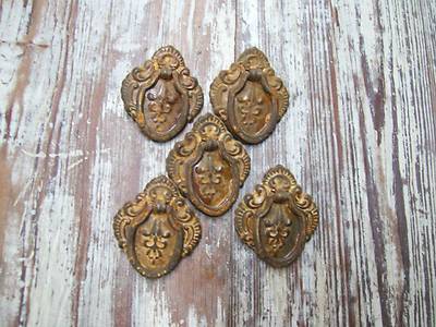 ANTIQUE VINTAGE METAL FURNITURE CABINET DRAWER PULL DROP HANDLE KNOB LOT OF 5