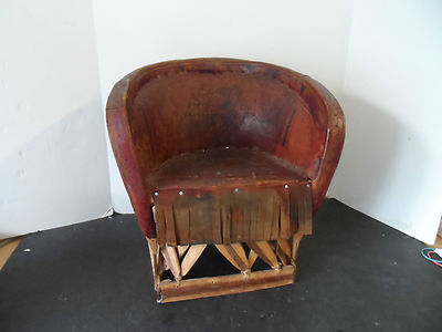 Title (ebay affiliate link): AMAZING OLD Tooled Leather SouthWest Scene/ Split Hickory Base Child's Chair!