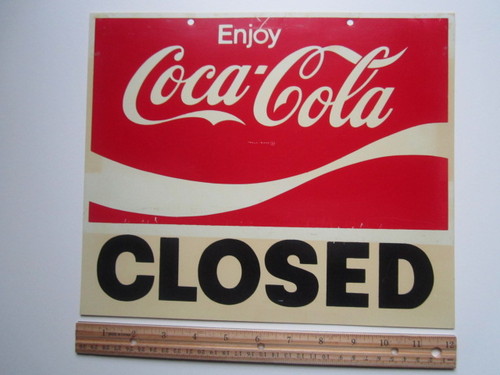 Vintage Plastic Open Closed Advertising Sign Enjoy Coca-Cola Coke Soda Pop uj866