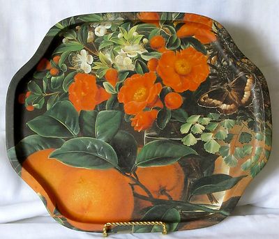 Title (ebay affiliate link): Vintage Tin Tray Orange Blossoms & Butterfly 12.75 By 10.75 Inches