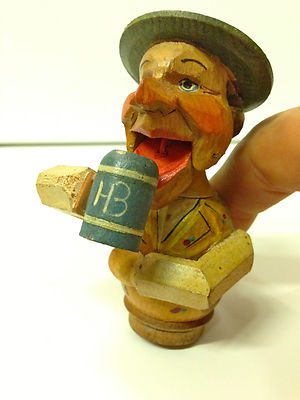 Vintage ANRI Carved Wood Drinking Man with Stein