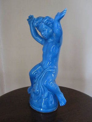 Vintage Art Deco Boy Figurine - Vivid Blue Glaze - 8.5" tall