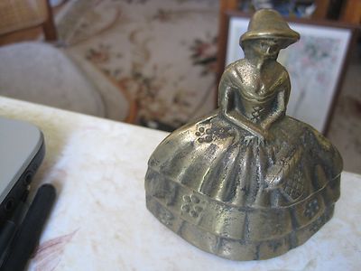 Title (ebay affiliate link): Vintage LADY BRASS BELL, cast brass, Victorian Lady, 3" across x 3" tall