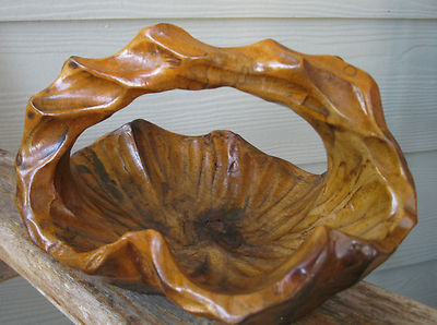 Title (ebay affiliate link): Vintage Mid Century Modern Carved Wood Bowl Basket Abstract Art Biomorphic