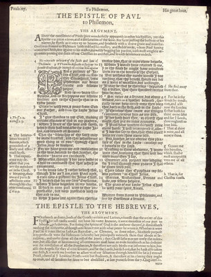 Title (ebay affiliate link): 1580 Geneva Quarto Black Letter Bible Leaf/COMPLETE BOOK OF PHILEMON/WOODCUT!