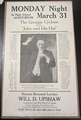 Title (ebay affiliate link): C1920 Broadside William D Upshaw Georgia Prohibition Cyclone
