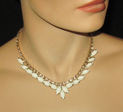 Vintage Milk Glass and Rhinestone Necklace