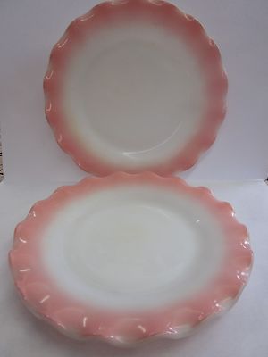 2 Vintage Hazel Atlas Petticoat Crinoline Pink Ruffle Ripple Milk Glass Plates
