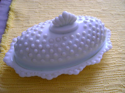 BEAUTIFUL VINTAGE MILK GLASS HOBNOB BUTTER DISH