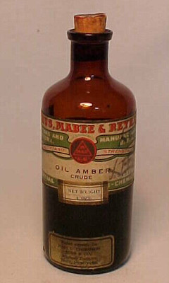 Title (ebay affiliate link): c1930s Magnus, Mabee & Reynard New York Oil Amber Cork Top Bottle with Label